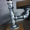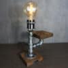 - Material: Silver metal pipes, aluminum lamp head, tungsten filament Edison bulb, and solid pine wood base with a small shelf.
